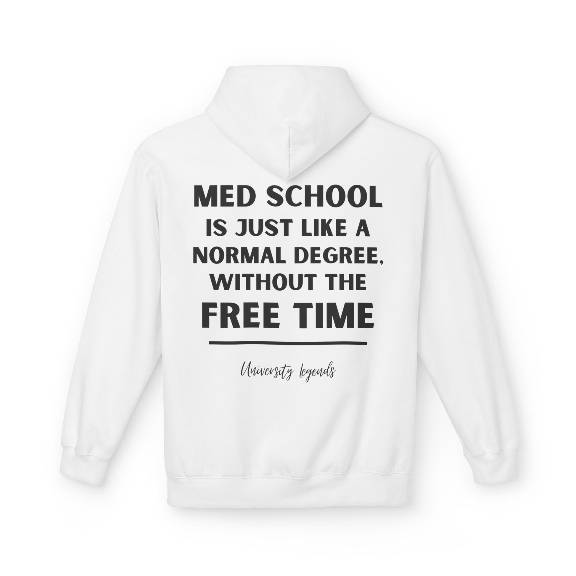 This midweight fleece hoodie delivers understated campus energy. The clean white base and bold back print create a subtle inside nod to university students who live between lectures, libraries, and coffee breaks. Soft yet structured fabric, a lined hood, dropped shoulders, and a roomy pouch pocket make it ideal for long study sessions and everyday campus wear. Ethically made and OEKO-TEX certified for comfort with a conscience.