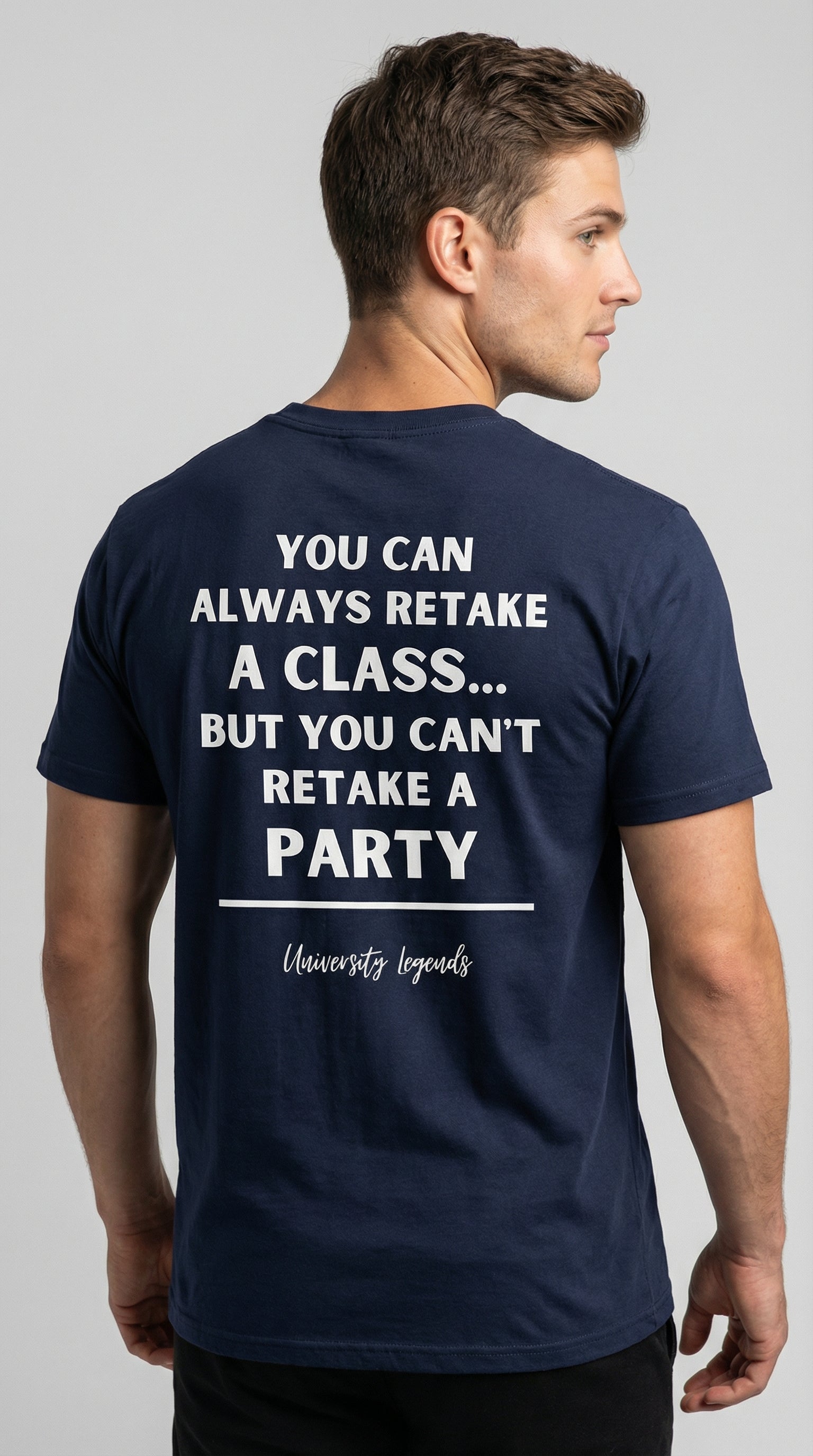 Lightweight, breathable cotton tee with a relaxed crew neck, designed for effortless campus wear. The clean white base and bold back graphic deliver dry, understated humor for university students moving between lectures, libraries, and coffee runs. Comfortable enough for long study sessions, yet sharp enough for everyday wear, it’s a simple statement piece that fits naturally into student life. Minimal, confident, and never trying too hard.